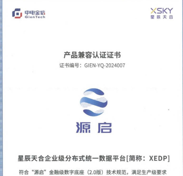 服務(wù)于金融新核心系統(tǒng) XSKY星辰天合與中電金信完成產(chǎn)品兼容認證